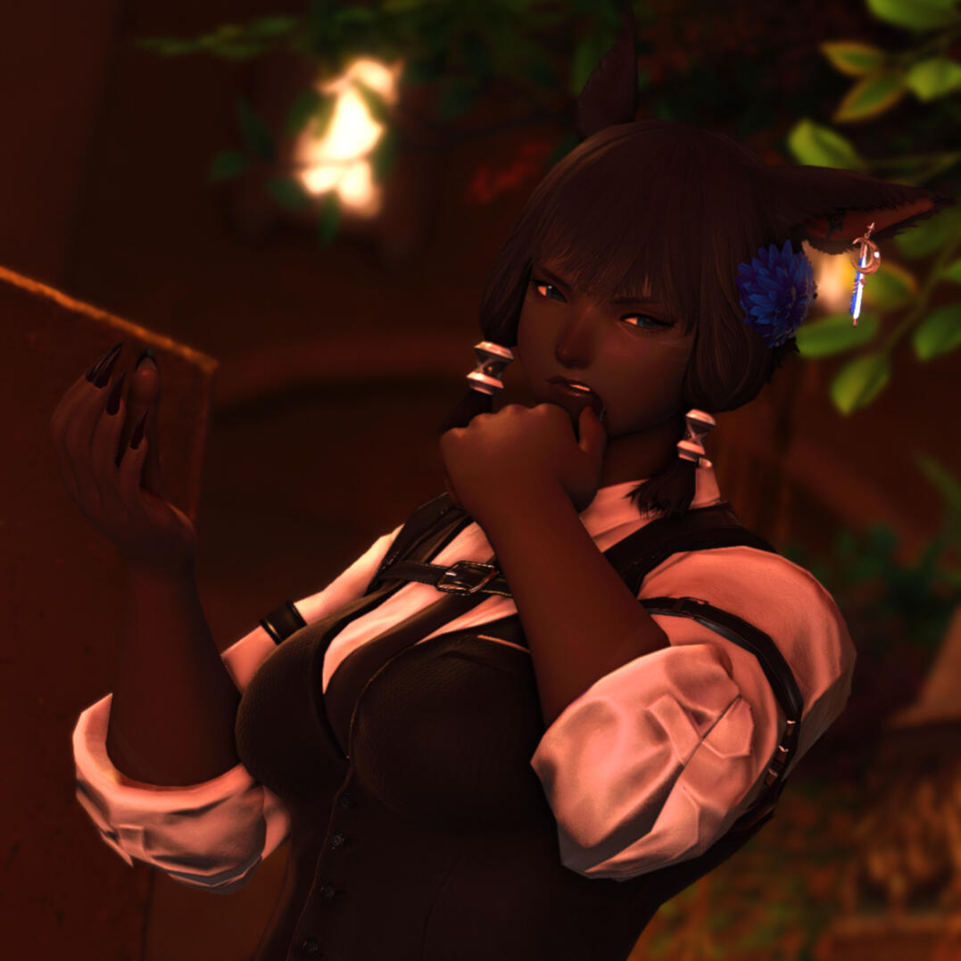 Guinivere is flamboyant, feisty, fashionable, and loud. She's the proudest voice in the room and will do anything and everything for the latest trends and outfits. She's an incredible businesswoman, cutthroat and ambitious, and the type of girl to spend three hours reading through the fine print that anyone else will skip directly over.When she's on the premises, she's fluttering about like a social butterfly. This Ul'dahn belle likes to be the life of the party and tries her best to be.More About Guinivere: knave.crd.co/#guinivere